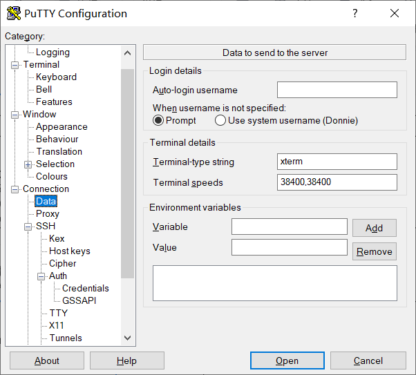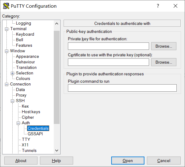 在Private Key file for authentication处选择刚才生成的key,yourkey.ppk